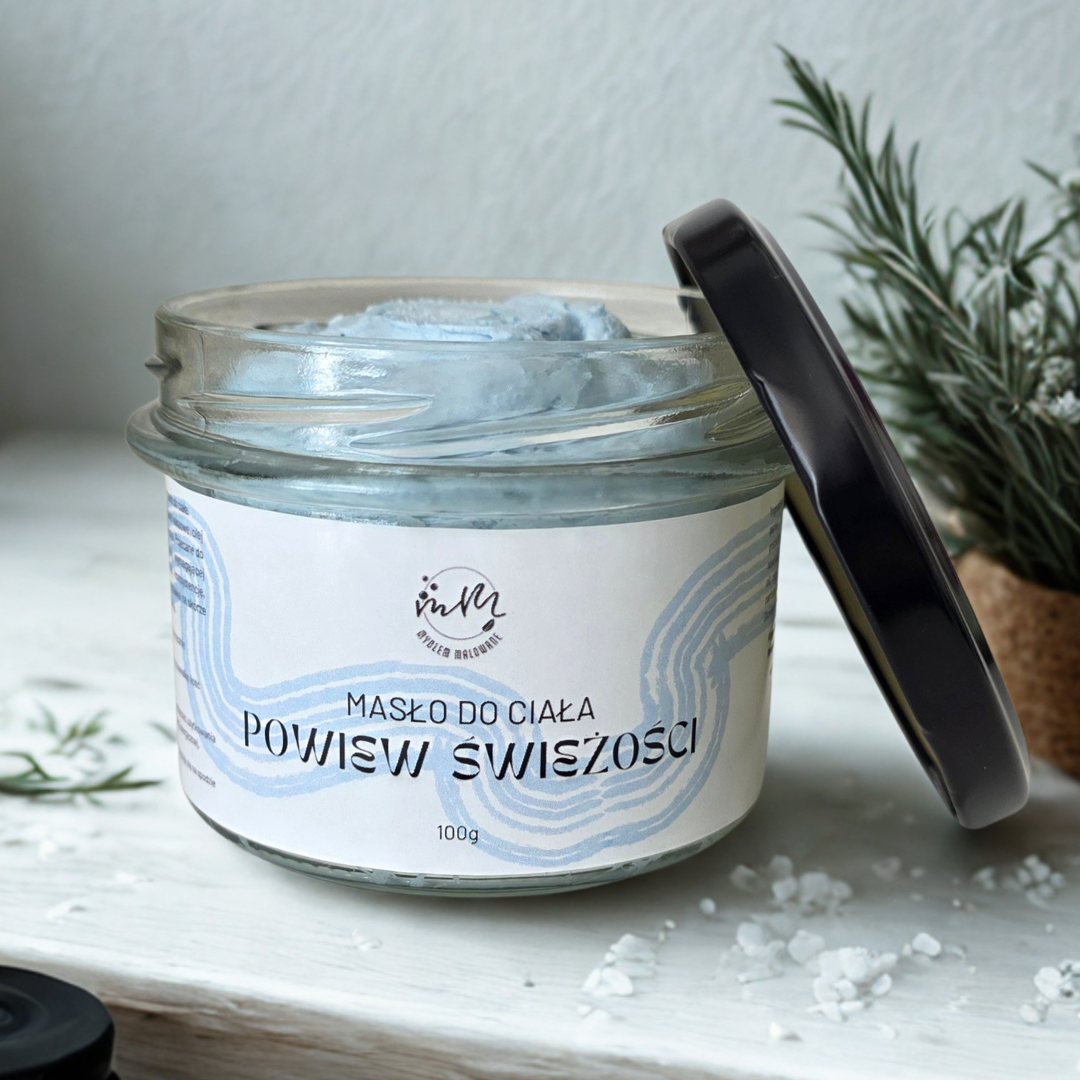 „Powiew Świeżości” to masło do ciała, które otula skórę poranną morską bryzą. Jest inspirowane kultowymi perfumami Acqua di Gio. Lekka, orzeźwiająca kompozycja nut morskich i cytrusów sprawia, że każdy moment pielęgnacji staje się prawdziwym odświeżającym rytuałem. To luksusowy produkt stworzony z bogactwa naturalnych składników: masła shea, masła kakaowego, oleju makadamia, oleju z awokado, witaminy E, skrobi kukurydzianej oraz gliceryny. Każdy z nich dostarcza intensywnego nawilżenia, odżywienia i wygładzenia, nie pozostawiając tłustego filmu na skórze.