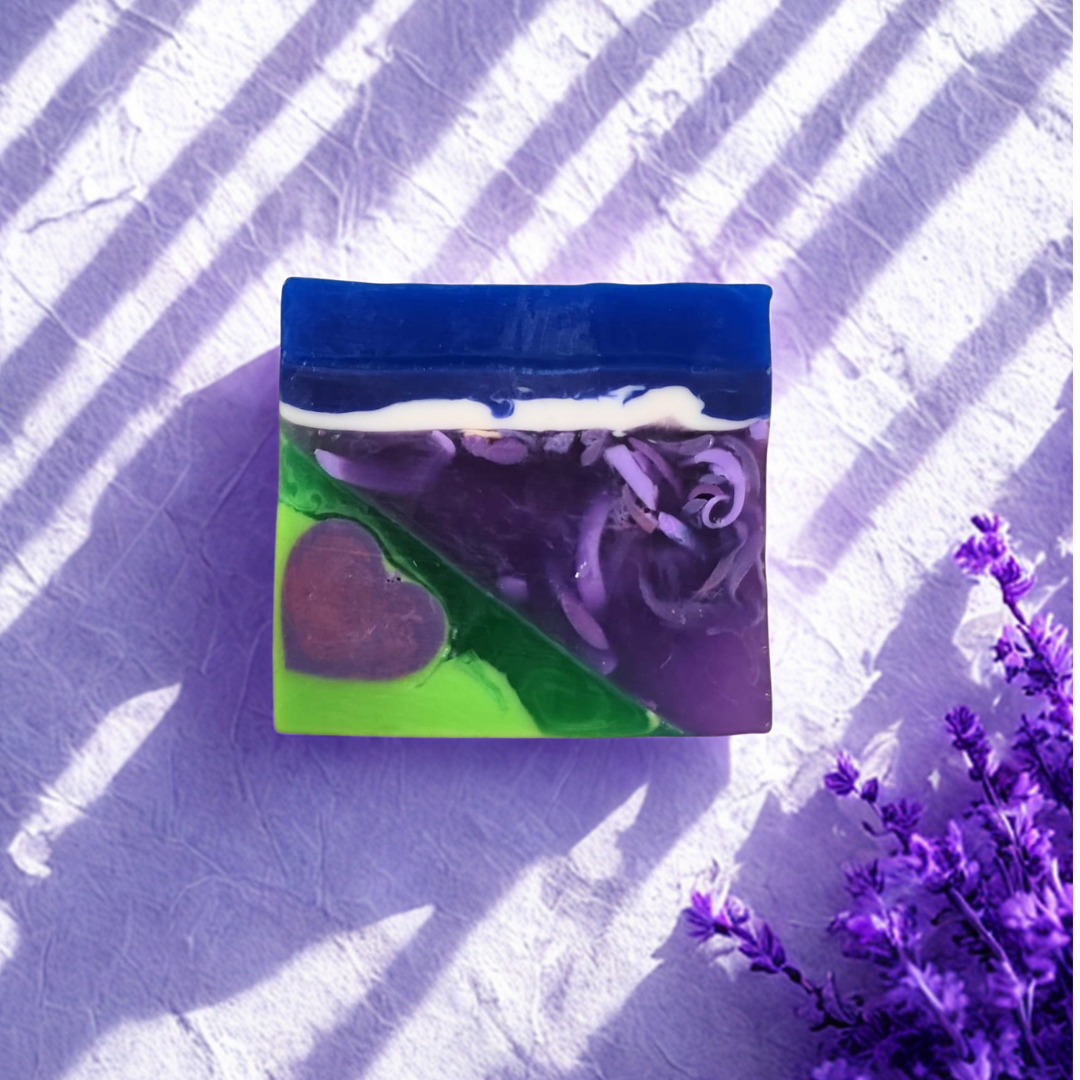Formuła bez SLS i SLES delikatnie oczyszcza skórę, dbając o jej naturalne nawilżenie i komfort nawet przy codziennym stosowaniu. Transparentna kostka kryje w sobie urocze wzory – romantyczne serduszka przeplatają się z subtelnymi motywami pól lawendy, tworząc małe dzieło sztuki inspirowane naturą.