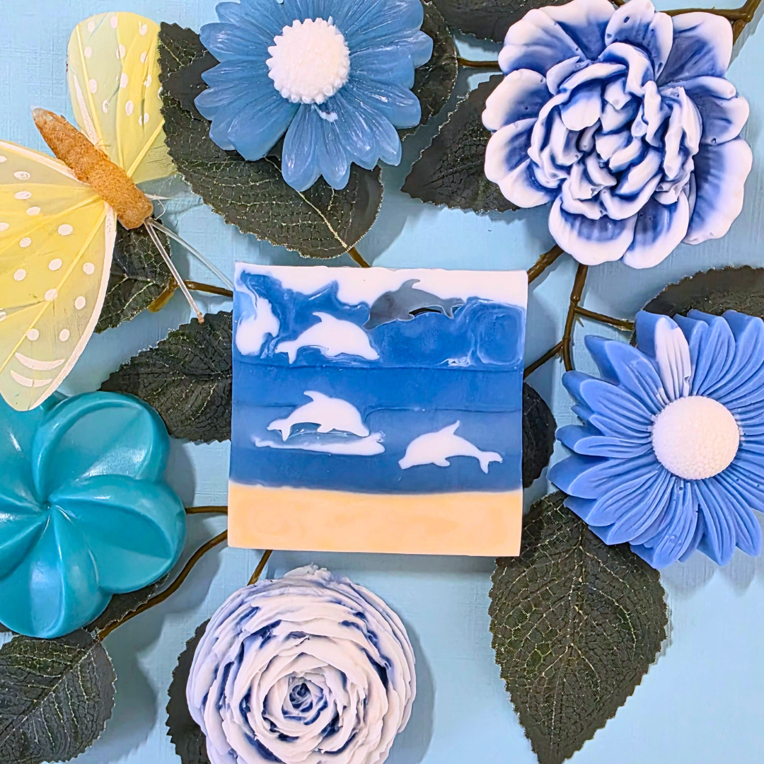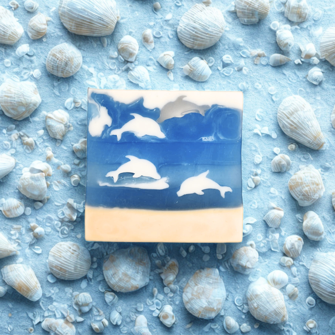 Transparentna kostka zachwyca subtelnym wzorem fal, wśród których skrywają się urocze delfinki – jak małe dzieło sztuki zamknięte w mydle. Każde użycie to nie tylko pielęgnacja, ale i chwila relaksu, która przenosi myślami nad spokojne, błękitne morze.