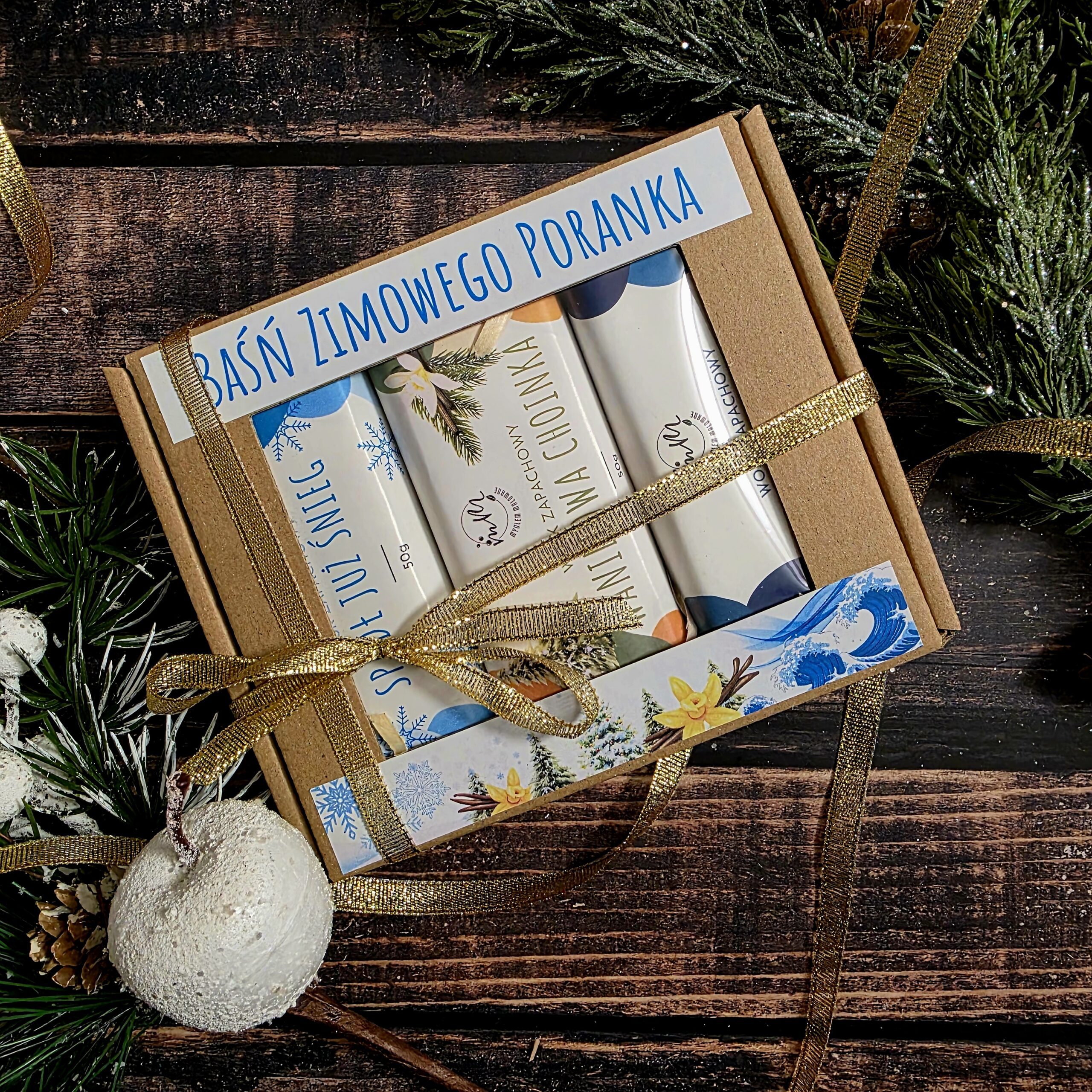 Podaruj bliskim magiczną historię – zanurz się w Baśni zimowego poranka, gdzie każdy aromat niesie ze sobą nutę zaczarowanej opowieści. Ten elegancki zestaw prezentowy skrywa trzy ręcznie tworzone woski sojowe ukryte w ozdobnym pudełku z wypełnieniem, przewiązane świąteczną tasiemką.