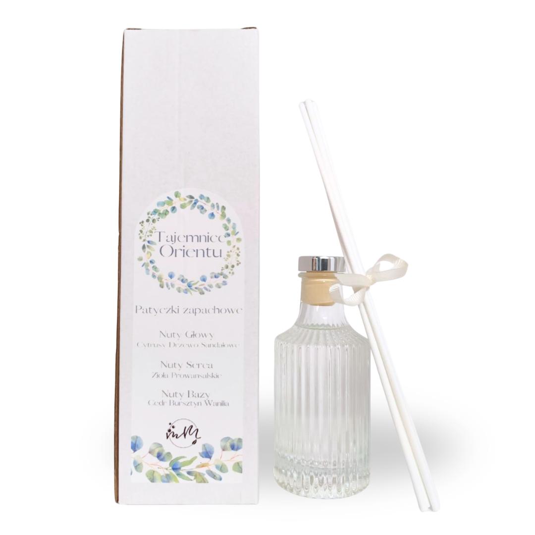 W zestawie: słoiczek 140ml esencja zapachowa oraz 5 patyczków do zapachów
