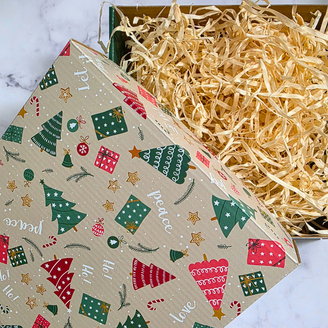 Świąteczne zdobienia nadają całości uroku i sprawiają, że pudełko staje się nie tylko opakowaniem, ale częścią prezentu – gotową, by wywołać uśmiech jeszcze przed jego otwarciem.